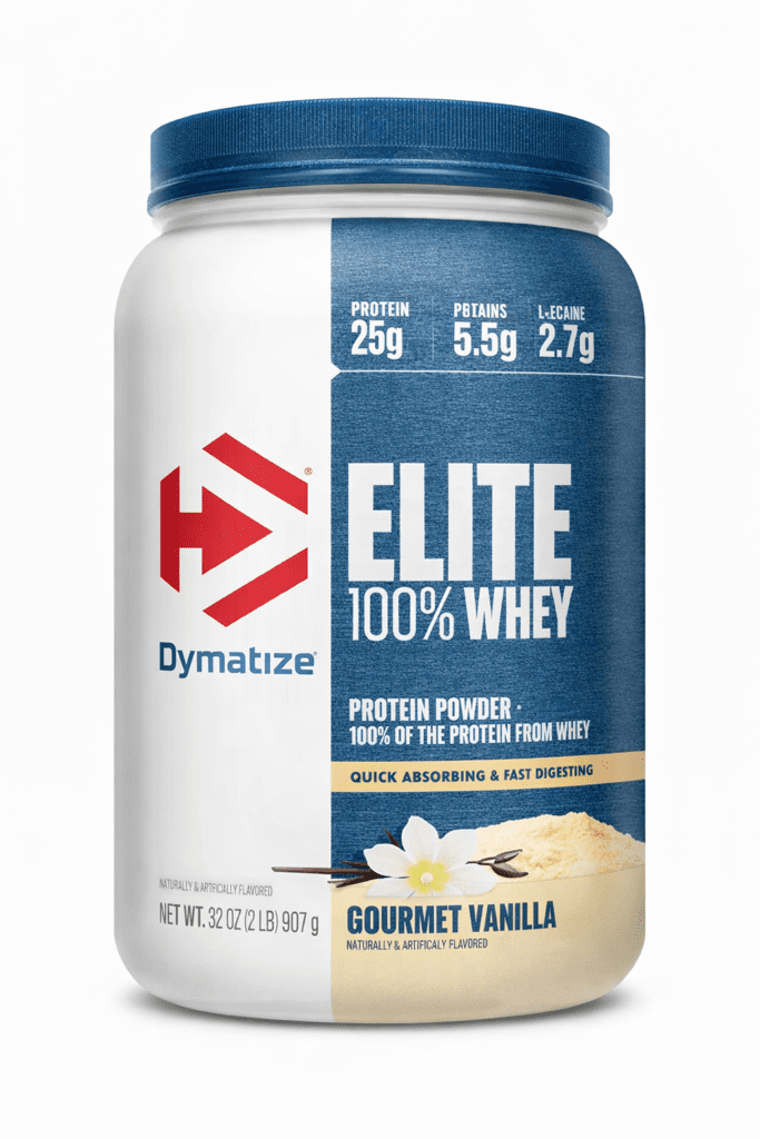 Dymatize Elite 100% Whey is a classic, reliable protein powder that delivers 25 g of high‑quality whey protein per scoop, including 5.5 g of BCAAs to support muscle recovery and growth after training sessions.
