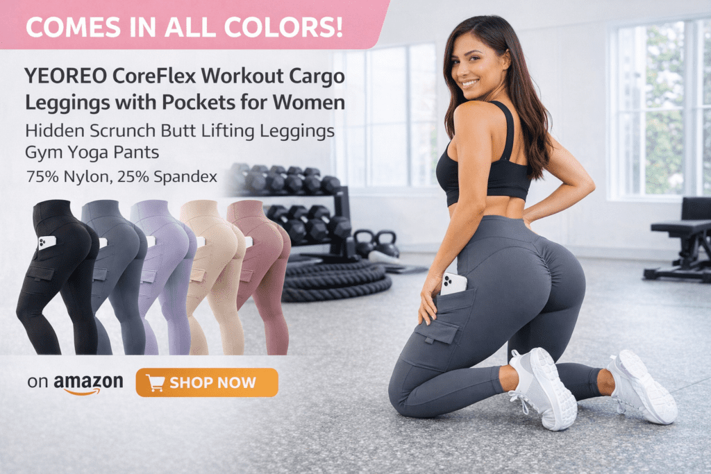YEOREO CoreFlex Workout Cargo Leggings are designed to sculpt, lift, and move with you. Featuring a hidden scrunch butt design for a flattering shape, convenient cargo pockets, and a high-waisted supportive fit, these leggings deliver both performance and style.
